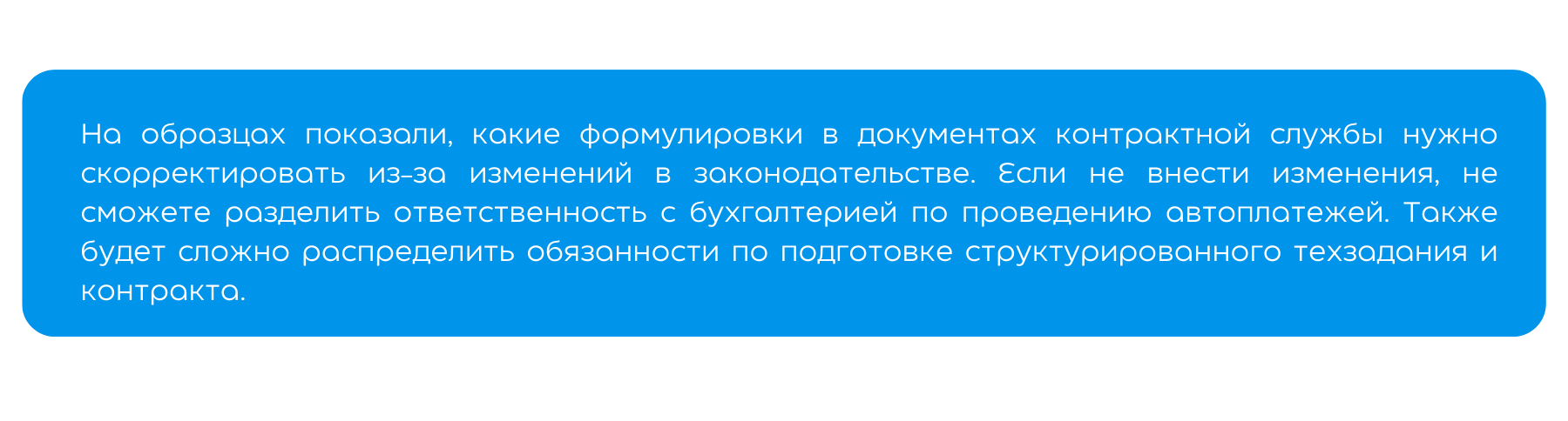 Положение о контрактной службе первый документ, который нужно отредактировать с учетом изменений. В положении предусмотрите разделение полномочий по формированию структурированных документов.